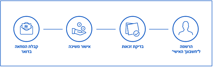 לאחר תהליך רישום קצר ופשוט למערכת "חשבונך האישי", תוכלו לבצע משיכת כספים מחשבונכם וההמחאה תישלח לכתובתכם תוך 14 ימים.